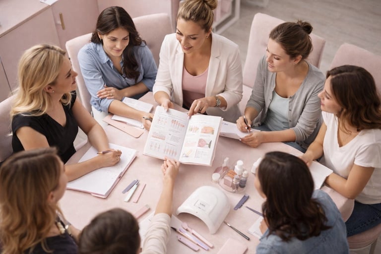 Material listo con hojas de apoyo, esquemas y recursos visuales para organizar y mejorar tus clases de uñas de forma profesional.